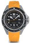 To wytrzymały, kwarcowy diver Swiss Made o wodoszczelności 200 m, z zakręcaną koronką, szkłem szafirowym i jednokierunkowym bezelem. Czarna tarcza z intensywną lumą oraz pomarańczowy pasek silikonowy podkreślają techniczny charakter zegarka i ułatwiają odczyt w każdych warunkach.