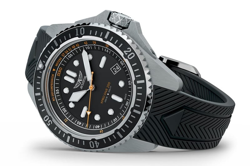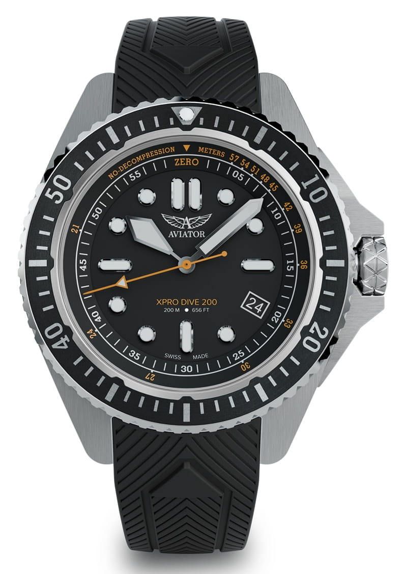 Aviator XPRO DIVE 200 V.1.42.0.371.6 – sportowy zegarek nurkowy z czarnym paskiem i czytelną skalą NDL.