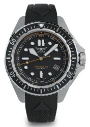 To wytrzymały, kwarcowy diver Swiss Made o wodoszczelności 200 m, z zakręcaną koronką, szkłem szafirowym i jednokierunkowym bezelem. Czarna tarcza z intensywną lumą oraz czarny pasek silikonowy podkreślają techniczny charakter zegarka i ułatwiają odczyt w każdych warunkach.