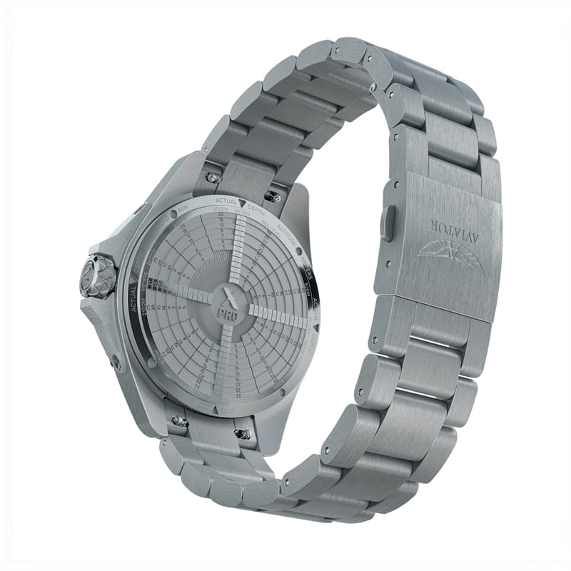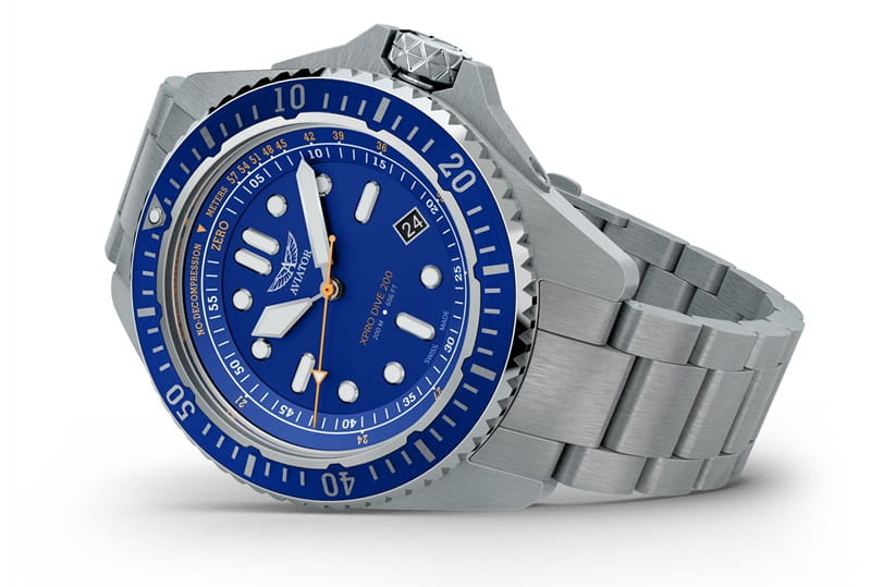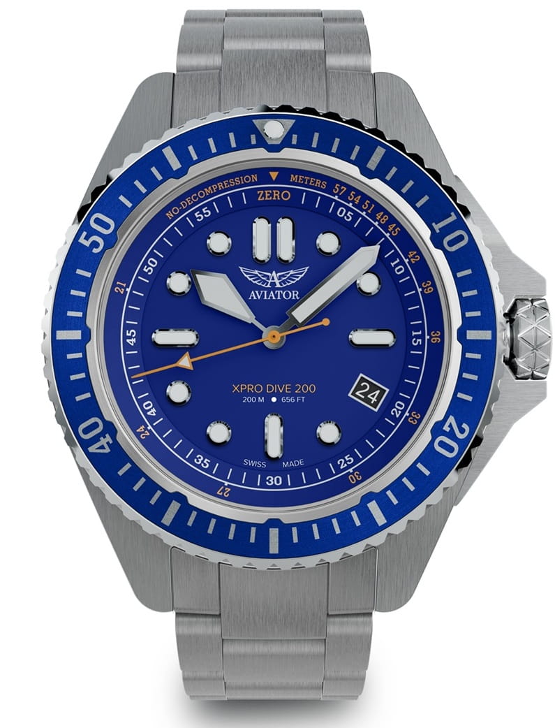 Aviator XPRO DIVE 200 V.1.42.0.372.5 – sportowy zegarek nurkowy ze stalową bransoletą i czytelną skalą NDL.