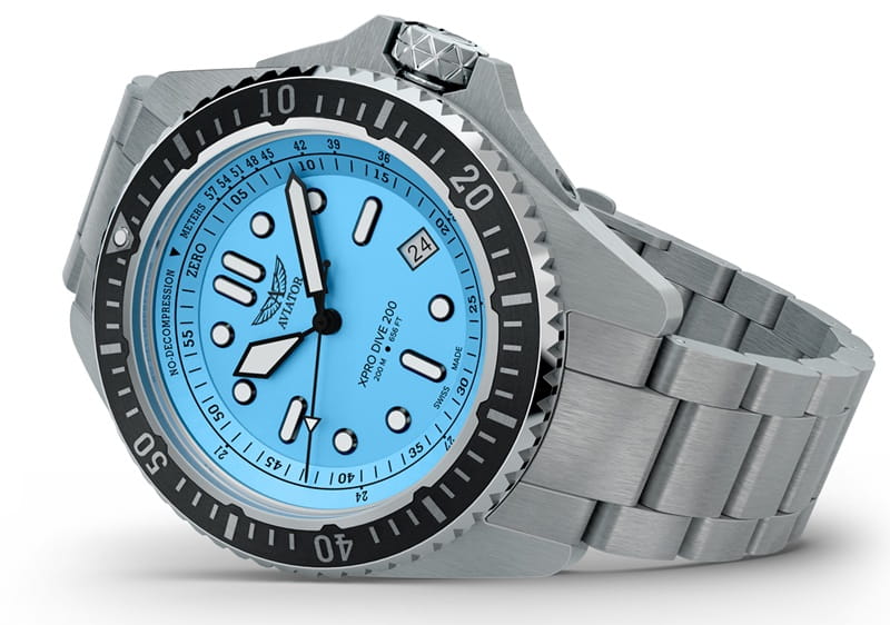 Aviator XPRO DIVE 200 V.1.42.0.371.5 – sportowy zegarek nurkowy ze stalową bransoletą i czytelną skalą NDL.