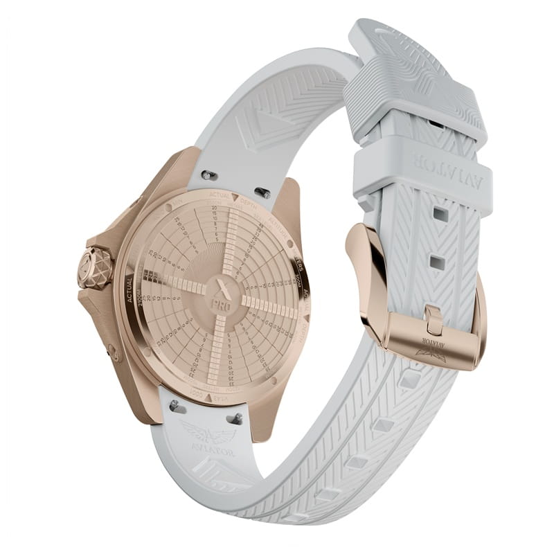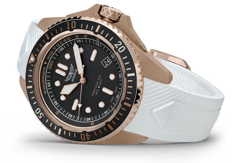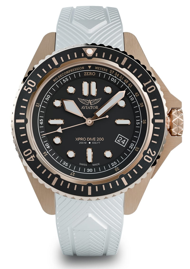 Aviator XPRO DIVE 200 V.1.42.0.373.0 – sportowy zegarek nurkowy z białym paskiem i czytelną skalą NDL.