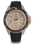 To wytrzymały, kwarcowy diver Swiss Made o wodoszczelności 200 m, z zakręcaną koronką, szkłem szafirowym i jednokierunkowym bezelem. Złota tarcza z intensywną lumą oraz czarny pasek silikonowy podkreślają techniczny charakter zegarka i ułatwiają odczyt w każdych warunkach.