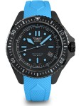 To wytrzymały, kwarcowy diver Swiss Made o wodoszczelności 200 m, z zakręcaną koronką, szkłem szafirowym i jednokierunkowym bezelem. Czarna tarcza z intensywną lumą oraz błękitny pasek silikonowy podkreślają techniczny charakter zegarka i ułatwiają odczyt w każdych warunkach.