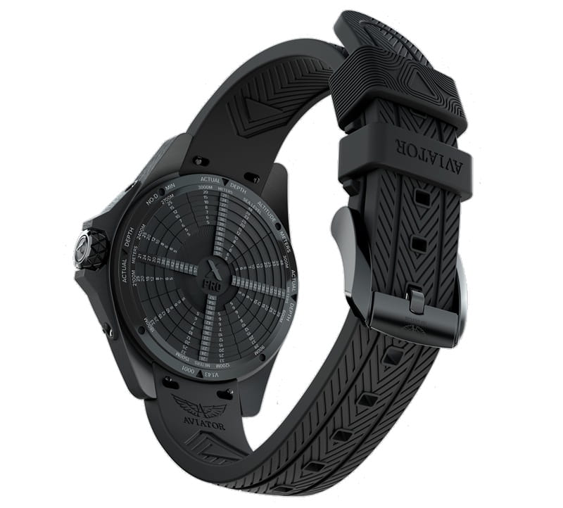 Aviator XPRO DIVER 200 V.1.42.5.378.6 – profesjonalny diver 200 m z czarną tarczą i czarnym silikonowym paskiem.