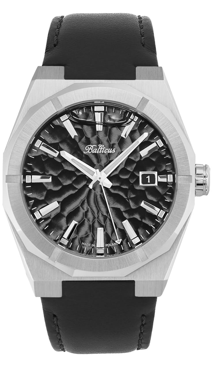 Zegarek Balticus Gwiezdny Pył oferuje wskazanie czasu oraz daty na podstawie klasycznego datownika na godzinie 3.