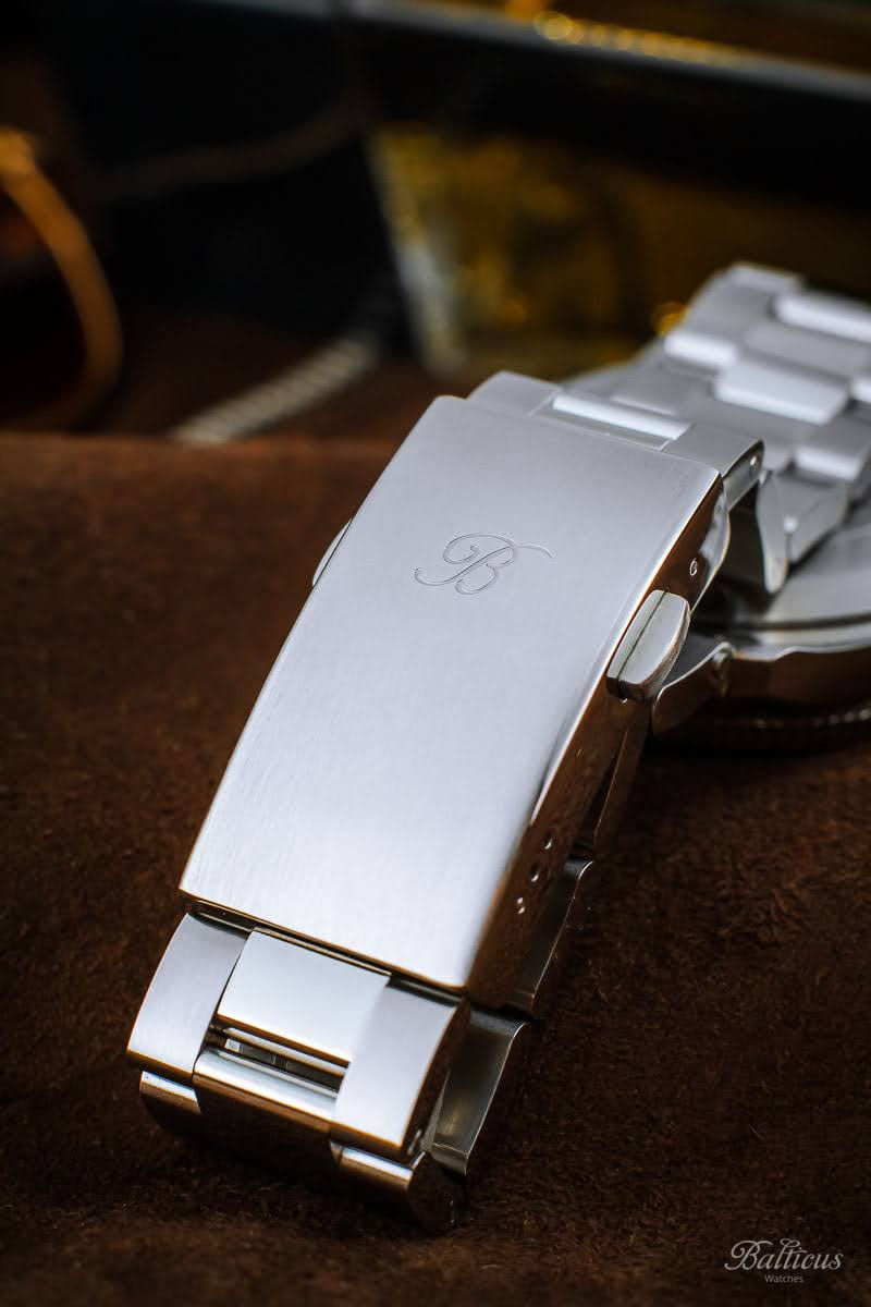 Bransoleta zegarka została wykonana z tej samej stali 904L co koperta, co gwarantuje jednolity wygląd i wyjątkową trwałość. Składa się z pełnych ogniw, a jej składane zapięcie z bocznymi przyciskami zapewnia pewne trzymanie i wygodę noszenia nawet przez cały dzień. Maksymalny obwód bransolety: 21 cm.
