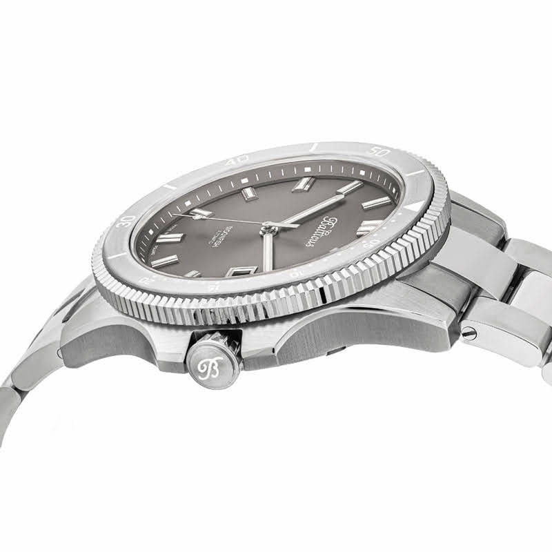 Model BLT-BTMFGRE z kolekcji Moonfish to wyjątkowy zegarek, który łączy minimalistyczny design z najwyższej jakości materiałami. Szara tarcza z wykończeniem sunburst doskonale komponuje się z kopertą i bransoletą wykonaną z prestiżowej stali 904L, nadając całości spójny, elegancki charakter. Limitowana edycja do 50 sztuk podkreśla unikalność tego modelu.