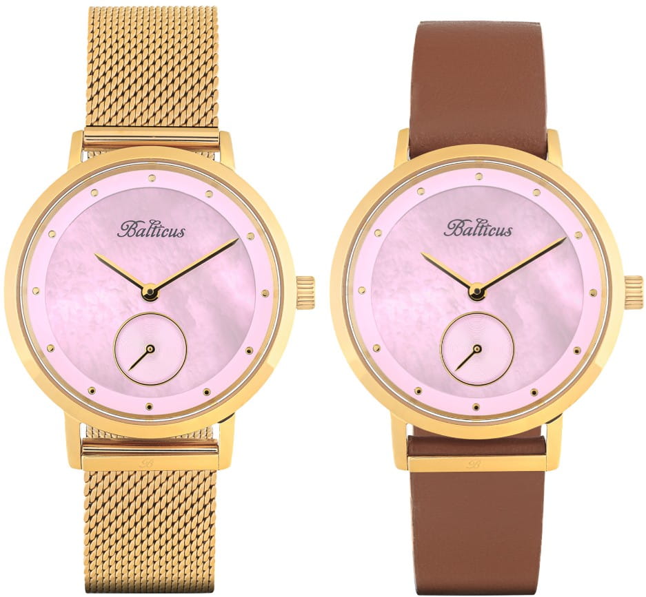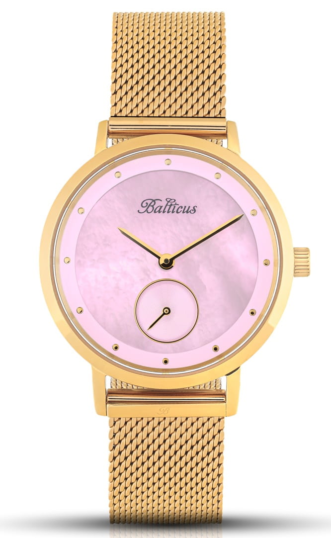 Zegarek Balticus New Sky Gold Pink Pearl to połączenie minimalistycznego designu z luksusowym wykończeniem, inspirowanym zmiennością nieba. To wyjątkowa propozycja dla kobiet ceniących elegancję, subtelność i niezawodność w jednym. Model ten łączy klasyczne wzornictwo z nowoczesnymi akcentami – jak modna, złocona bransoleta mesh i tarcza wykonana z masy perłowej. Całość zamknięta w okrągłej kopercie ze stali szlachetnej w kolorze złota sprawia wrażenie lekkiej, a zarazem niezwykle luksusowej.