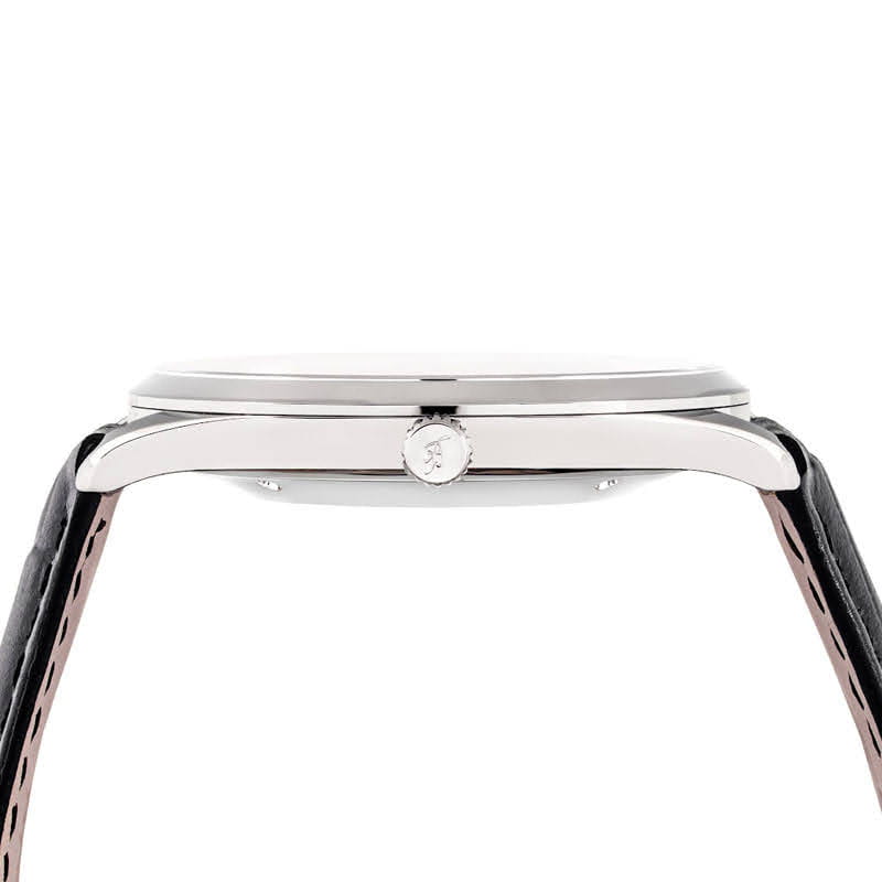 Koperta została wykonana z wysokiej jakości stali szlachetnej 316L, która gwarantuje trwałość i odporność na uszkodzenia. Jej średnica 40 mm i smukły profil ok. 9 mm sprawiają, że zegarek prezentuje się elegancko i wygodnie układa się na nadgarstku. Transparentny dekiel pozwala podziwiać pracę mechanizmu, a całość uzupełnia koronka sygnowana logo marki, dodająca zegarkowi prestiżu i spójności stylistycznej.