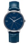 Granatowy, skórzany pasek o szerokości 20 mm zapewnia wygodę noszenia i elegancję, idealnie współgrając z całością projektu.