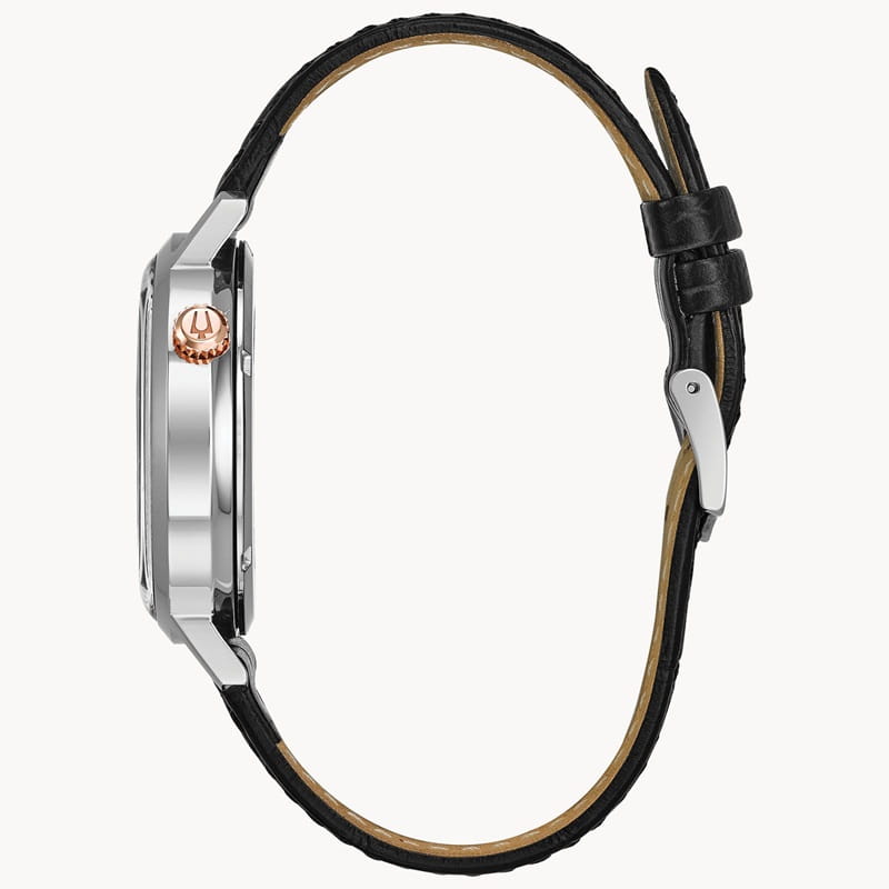 Model 98A187 z kolekcji Aerojet to elegancki zegarek z klasyczną stylizacją z lat 60. XX wieku. Posiada wyjątkowe „open‑heart” i subtelne luminescencyjne akcenty – doskonały wybór jako stylowy zegarek codzienny lub do formalnych stylizacji.