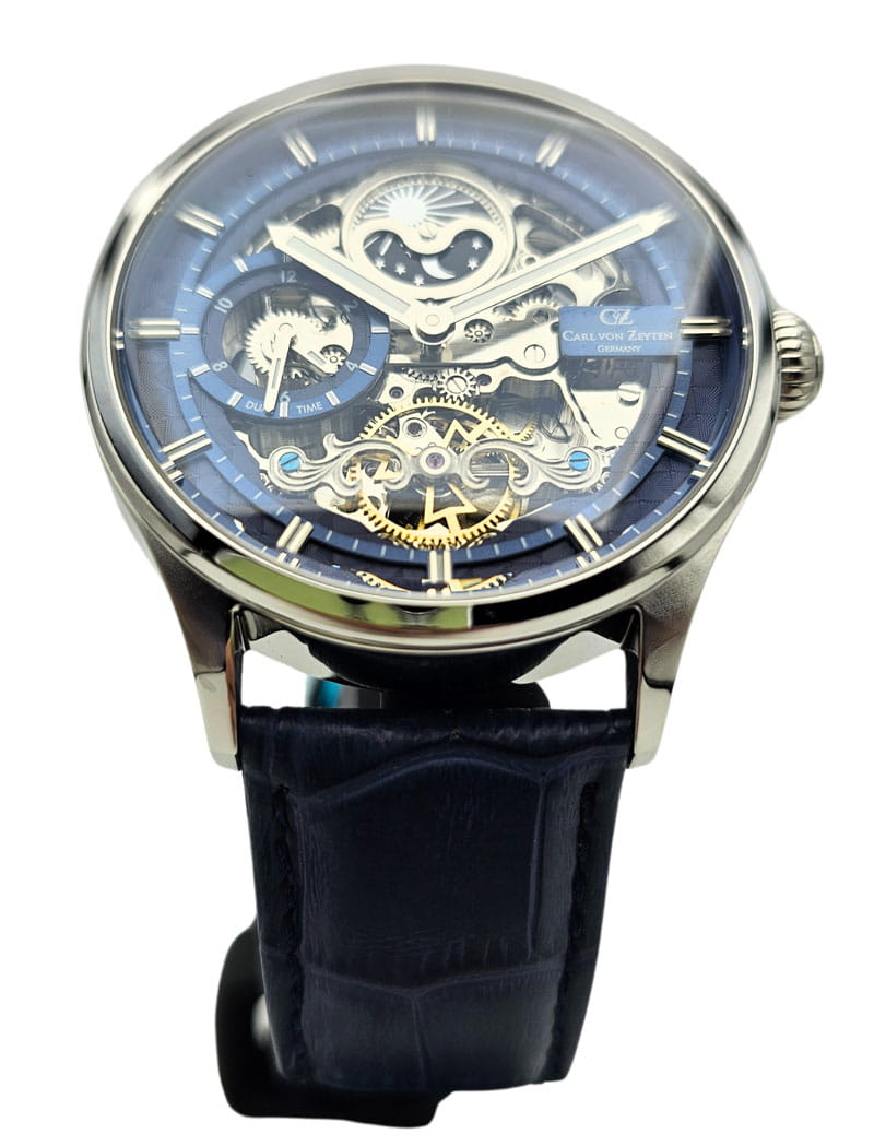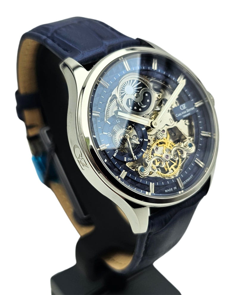 ⚙️ Zegarki Carl von Zeyten wyróżniają się rozbudowanymi tarczami typu skeleton, widocznymi elementami mechanizmu oraz starannie wykończonymi detalami. Marka wykorzystuje mechanizmy automatyczne, stawiając na efektowną prezentację pracy zegarka i tradycyjne rozwiązania konstrukcyjne.