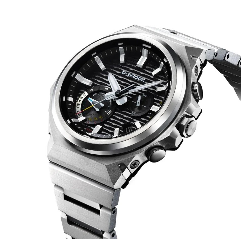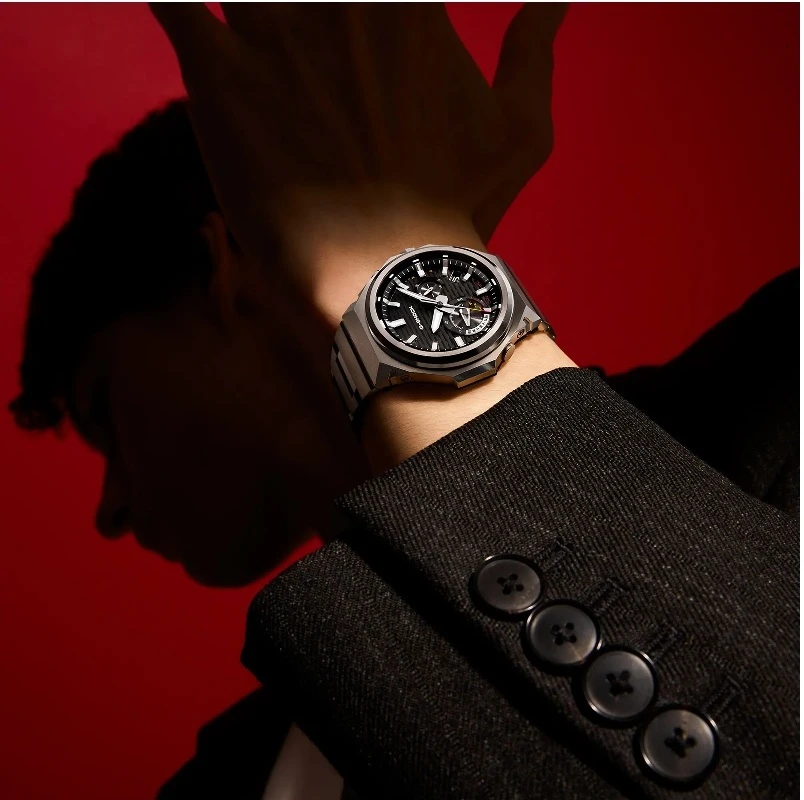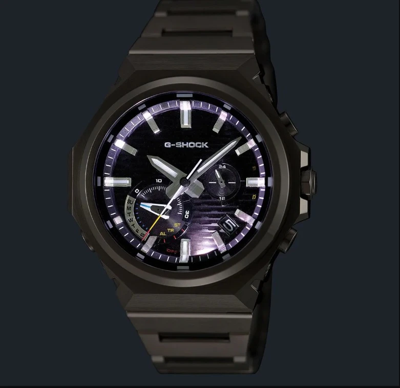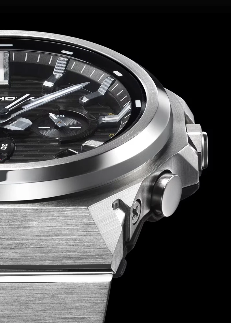 - Konstrukcja: Carbon Core Guard structure wzmacnia odporność modelu i dobrze wpisuje się w użytkowy charakter serii G-SHOCK. Ośmiokątny bezel to znak rozpoznawczy niezniszczalności, przeprojektowany w wersji logo-less dla absolutnej redukcji szumu wizualnego.