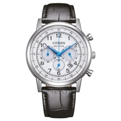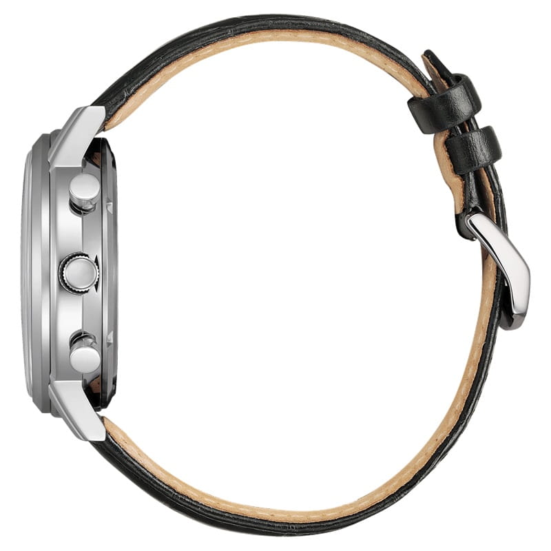 Model Citizen CA4630-02A łączy elegancję białej tarczy z funkcjonalnością sportowego chronografu. Zasilanie światłem w technologii Eco-Drive zapewnia długą autonomię bez wymiany baterii, a stalowa koperta o średnicy 42 mm i czarny skórzany pasek tworzą uniwersalne zestawienie do codziennych stylizacji smart-casual.