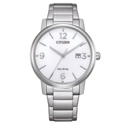 Zasilany światłem zegarek męski Eco‑Drive łączy klasyczną formę stalowej koperty 40 mm z funkcjonalnością w postaci datownika i wskaźnika rozładowania – niezawodny towarzysz na co dzień.
