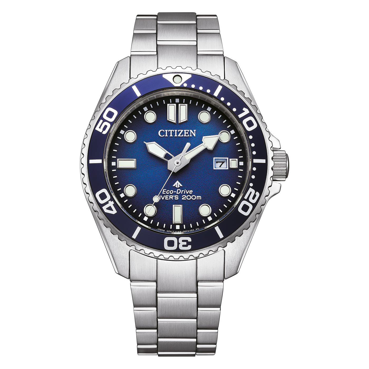 Gradientowa niebieska tarcza zapewnia świetną czytelność w zróżnicowanym świetle. Wyraziste indeksy i masywne wskazówki z luminacją gwarantują szybki odczyt czasu także pod wodą. Na godzinie 3 zintegrowano praktyczny datownik. Całość utrzymana jest w charakterystycznym dla diverów stylu – funkcjonalnie i bez zbędnych ozdobników.