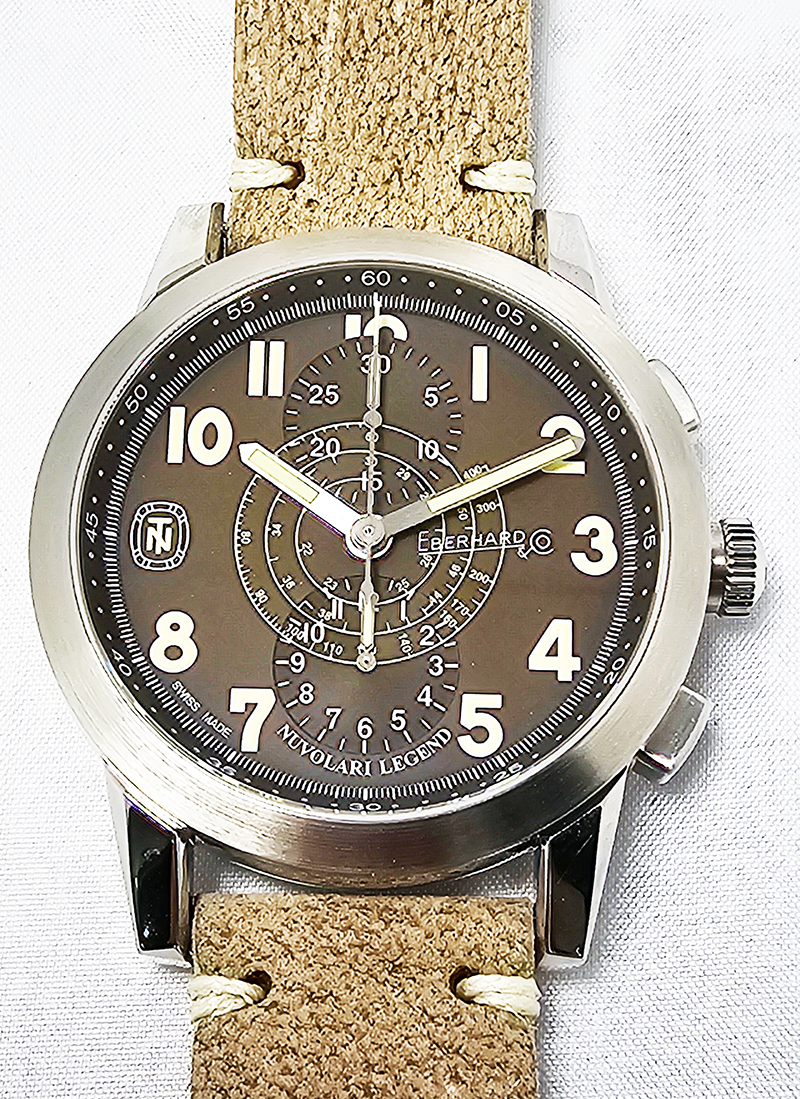 Zegarek Eberhard Nuvolari Legend 31138.02 CP pochodzi ze Szwajcarii, z warsztatów renomowanej manufaktury Eberhard & Co., działającej od 1887 roku w La Chaux-de-Fonds - sercu szwajcarskiego zegarmistrzostwa. Marka ta od ponad 130 lat specjalizuje się w tworzeniu chronografów, a kolekcja Nuvolari została stworzona jako hołd dla legendarnego włoskiego kierowcy wyścigowego Tazio Nuvolariego, zwanego „Mantuańskim Diabłem”.