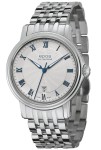 Koperta zegarka wykonana z wysokiej jakości stali nierdzewnej ma średnicę 41 mm, co sprawia, że zegarek jest doskonale wyważony i odpowiedni na każdą okazję. Tarcza w kolorze białym z delikatnym giloszowaniem oraz rzymskie indeksy dodają zegarkowi klasycznego i eleganckiego wyglądu. Zegarek posiada wodoszczelność na poziomie 5 ATM, co chroni go przed przypadkowymi zachlapaniami. Detal który ma znaczenie