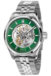 Epos 3501.135.20.13.30 Epos 3501.135.20.13.30 to zegarek, który doskonale łączy klasyczną elegancję z nowoczesnym designem. Wyposażony w automatyczny mechanizm SW200, który jest widoczny dzięki ażurowanej tarczy oraz przezroczystemu dekielkowi, ten czasomierz oferuje wyjątkową precyzję i niezawodność, które są synonimem szwajcarskiego zegarmistrzostwa. Koperta o średnicy 41 mm, wykonana ze stali nierdzewnej, podkreśla trwałość i elegancję tego modelu. Zegarek posiada zieloną tarczę w stylu skeleton, która dodaje mu unikalnego charakteru. Aplikowane indeksy oraz odporne na zarysowania szkło szafirowe zapewniają doskonałą czytelność i trwałość. Dzięki wodoszczelności na poziomie 10 ATM, zegarek ten jest idealny zarówno do codziennego użytkowania, jak i do okazjonalnego kontaktu z wodą. Klasyka spotyka nowoczesność Epos 3501.135.20.13.30 to doskonały wybór dla miłośników zegarków mechanicznych, którzy cenią sobie klasyczny design z nowoczesnymi akcentami. Stalowa bransoleta z zapięciem motylkowym zapewnia trwałość i elegancję, idealnie komponując się z kopertą. Przezroczysty dekiel pozwala na podziwianie skomplikowanej pracy mechanizmu, co jest szczególnie atrakcyjne dla każdego entuzjasty precyzyjnych czasomierzy. Cechy szczególne:
