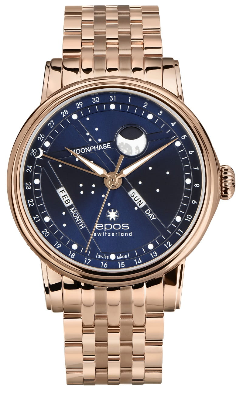 ⚙️ Epos wyróżnia się dbałością o detale i kunsztownym wykończeniem, często prezentując w swoich modelach komplikacje zegarmistrzowskie, takie jak chronografy, wskaźniki rezerwy chodu czy tarcze typu open heart, odsłaniające pracę mechanizmu. Zegarki marki powstają zgodnie ze standardami „Swiss Made” i łączą klasyczną elegancję z nowoczesnym podejściem do designu.