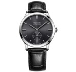 Epos Originale Elegant 3408.208.20.14.15Epos Originale Elegant 3408.208.20.14.15 to elegancki, minimalistyczny czasomierz dla mężczyzn od szwajcarskiej manufaktury, który doskonale sprawdzi się jako dodatek do każdej formalnej stylizacji. Prezentowany model 3408.208.20.14.15 wyposażono w mechanizm ręczny Peseux 7001 z 44-godzinną rezerwą chodu, który ulokowano w kopercie ze stali szlachetnej o grubości zaledwie 5,9 milimetra. Na czarnej tarczy znajdują się indeksy oraz mały zegar sekundnika, zaś za bezpieczeństwo cyferblatu odpowiada szafirowe szkło. Całość osadzona została na czarnym, skórzanym pasku z zapięciem na klamrę, które pozwala na komfortowe zakładanie i zdejmowanie zegarka. Epos Originale Elegant 3408.208.20.14.15 objęty został 2-letnią, międzynarodową gwarancją oraz zapakowany w eleganckie pudełko. Atrybuty: