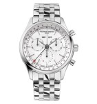 Srebrna, matowa tarcza z trzema subtarczami oraz datownikami na godzinie 12 i centralnej wskazówką daty gwarantuje czytelność i funkcjonalność. Nakładane stalowe indeksy i wskazówki z luminiscencją zapewniają dobre odczyty nawet przy słabym oświetleniu. Układ tarczy jest zbalansowany, pozwala łatwo odczytać stoper oraz dane kalendarzowe bez nadmiernego zagracenia. To wzór harmonii praktycznego designu.