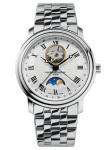 Automatyczny mechanizm FC‑335 | Tarcza Clous de Paris sunray | Open‑heart przy 12 h | Faza księżyca i wskazanie daty | Koperta 40 mm stal | Bransoleta stalowa