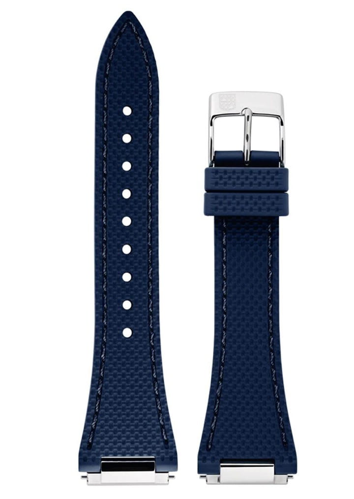 Zintegrowana bransoleta ze stali nierdzewnej z dodatkowym granatowym, gumowym paskiem w zestawie, zapewniająca wygodę i uniwersalność.