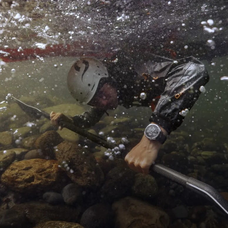 Zegarek ma klasę wodoszczelności 10 ATM (100 m), co pozwala na nurkowanie rekreacyjne, pływanie czy korzystanie w deszczu. Konstrukcja z uszczelnieniami klasy premium chroni elektronikę nawet w ekstremalnych warunkach. Więcej o klasach wodoszczelności przeczytasz tutaj. To poziom odporności, który daje pełną swobodę w każdych warunkach terenowych i pogodowych.