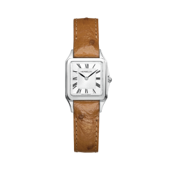 Eberhard 17457AP01GD Zegarek Eberhard 17457AP01GD to elegancki damski zegarek kwarcowy, który wyróżnia się zarówno stylem, jak i precyzją. Wyprodukowany przez renomowaną szwajcarską manufakturę Eberhard & Co, model ten łączy w sobie luksusowy design z wysoką funkcjonalnością, będąc doskonałym wyborem dla wymagających kobiet. Ten model posiada prostokątną kopertę wykonaną ze stali nierdzewnej, co zapewnia jego trwałość i odporność na codzienne użytkowanie. Tarcza zegarka jest srebrna, z delikatnymi detalami, które podkreślają jego wyrafinowany charakter. Pasek wykonany jest z wysokiej jakości skóry, co zapewnia komfort noszenia i elegancki wygląd. Główne zalety produktu: