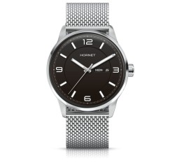 Zegarek należy do marki Hornet New York, której stylistyka opiera się na nowoczesnym, miejskim wzornictwie inspirowanym współczesną elegancją. W tym modelu zastosowano mechanizm szwajcarski Ronda, co podkreśla praktyczne i sprawdzone podejście do konstrukcji technicznej. Koperta oraz bransoleta wykonane są ze stali szlachetnej 316L, a całość utrzymana została w spójnej, srebrno-czarnej kolorystyce charakterystycznej dla nowoczesnych modeli męskich. Model dobrze wpisuje się w segment nowoczesnych zegarków kwarcowych do codziennego noszenia.