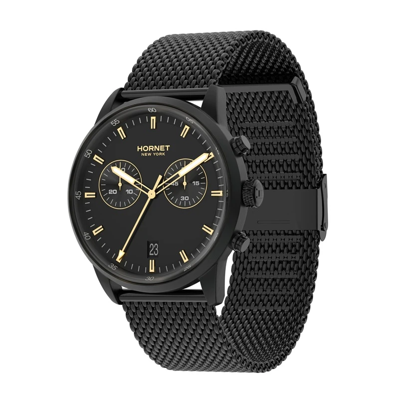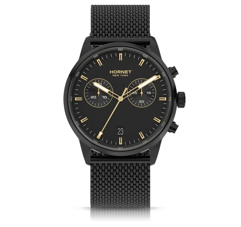 Model Hornet New York Hudson Alabama HH.B43B10.BGG to zegarek zaprojektowany w zdecydowanej, męskiej stylistyce, w której dominuje głęboka czerń koperty, tarczy oraz bransolety. Całość utrzymana jest w spójnym, nowoczesnym stylu, który dobrze wpisuje się w miejski charakter i aktualne trendy wzornicze. Zegarek przyciąga uwagę swoją prostotą, ale jednocześnie zachowuje wyrazisty charakter dzięki kontrastującym detalom. To propozycja dla osób, które szukają zegarka codziennego, ale jednocześnie chcą, aby był on mocnym elementem stylizacji. Model łączy funkcjonalność z estetyką, tworząc spójny i dopracowany projekt.