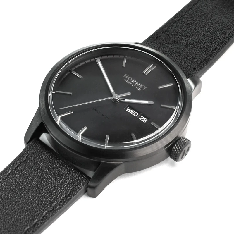 Zegarek sygnowany jest marką Hornet New York, a jego sercem pozostaje szwajcarski mechanizm, co podkreśla użytkowy i jakościowy charakter modelu. Połączenie nowoczesnego wzornictwa z praktycznym zapleczem technicznym daje efekt czasomierza bardzo uniwersalnego i dopracowanego. Konstrukcja oparta na stalowej kopercie, czytelnej tarczy oraz skórzanym pasku pokazuje, że projektowano go z myślą o wygodzie codziennego noszenia. To model o nowoczesnym, międzynarodowym charakterze i bardzo spójnej stylistyce. Całość dobrze łączy miejski design z klasyczną funkcjonalnością.