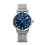 Model Hornet New York NYC Statenisland HN.S40S0B.BSS to zegarek męski utrzymany w uniwersalnej, miejskiej stylistyce, w której niebieska tarcza została zestawiona z kopertą i bransoletą mesh w srebrnej kolorystyce. Całość prezentuje się nowocześnie i wyraziście, ale jednocześnie zachowuje klasyczny układ, dzięki czemu model dobrze sprawdza się zarówno na co dzień, jak i przy bardziej uporządkowanych stylizacjach. Wyraźne indeksy i wskazówki pięknie kontrastują z tarczą, a funkcja day-date podkreśla praktyczny charakter zegarka. To propozycja dla mężczyzny, który szuka eleganckiego dodatku o uniwersalnym wyglądzie, ale z wyraźnie zaznaczoną osobowością.