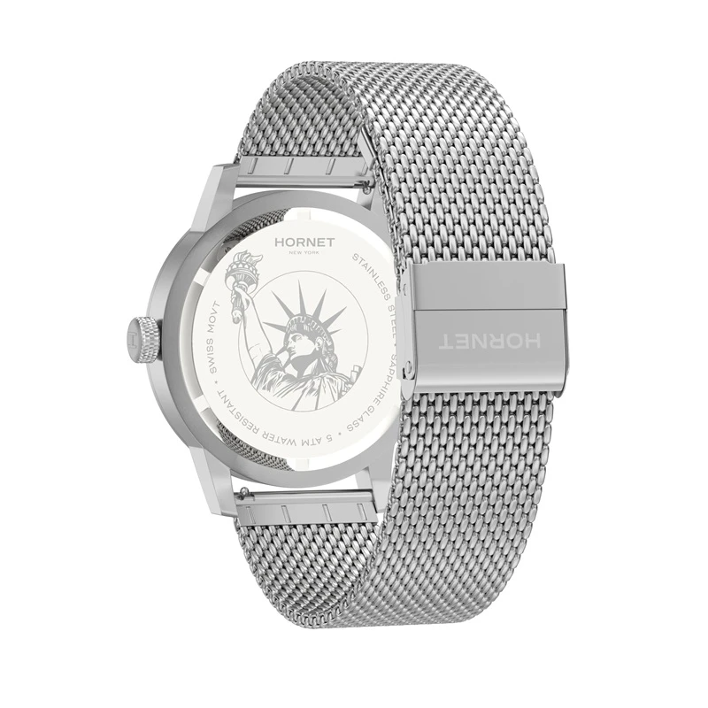 Zegarek sygnowany jest marką Hornet New York, a jego sercem pozostaje szwajcarski mechanizm Ronda, co wyraźnie podkreśla jakościowy charakter modelu. Połączenie współczesnego wzornictwa z praktycznym, szwajcarskim zapleczem technicznym daje efekt eleganckiego i użytkowego czasomierza. Konstrukcja oparta na stalowej kopercie 316L, szafirowanym szkle i stalowej bransolecie pokazuje, że model zaprojektowano z myślą o trwałości oraz wygodzie codziennego noszenia. To zegarek o nowoczesnym, międzynarodowym charakterze i bardzo uniwersalnej stylistyce. Całość dobrze łączy estetykę miejską z klasycznymi proporcjami.