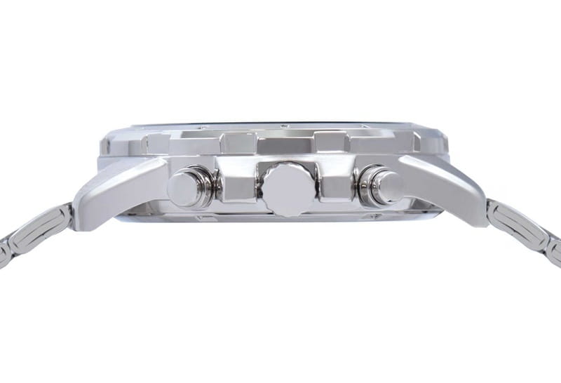 - Materiał i forma: koperta wykonana została z stali nierdzewnej, co zapewnia odporność na codzienne zużycie i stabilność konstrukcji. Jej sportowy charakter podkreśla połączenie powierzchni polerowanych i szczotkowanych.