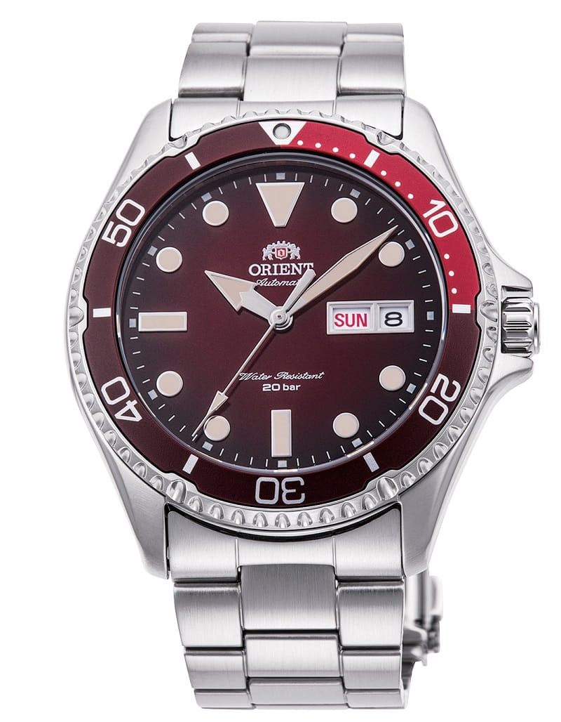ORIENT RA-AA0814R19BZegarek Orient Sports Mako Kamasu RA-AA0814R19B Sportowy, męski zegarek, idealnie nadający się do uprawiania sportu i aktywności na świeżym powietrzu. Koperta czasomierza została wykonana ze stali szlachetnej. Tarcza zegarka w kolorze cerwonym idealnie współgra z jasnymi wskazówkami i indeksami, które dzięki luminescencji są widoczne po zmroku. Kopertę zamocowano na solidnej i wytrzymałej bransolecie ze stali szlachetnej. Datownik wskazujący dzień miesiąca oraz tygodnia został umieszczony na godzinie trzeciej. Ten model wyróżnia się charakterystycznym obrotowym pierścieniem. Aluminiowy pierścień ozdabiają trójkątny indeks i znacznik 15 minuty. Zegarek idealny do noszenia na każdą okazję, zarówno na co dzień jak i „od święta”. Ten japoński zegarek posiada automatyczny mechanizm z około 40 godzinną rezerwą chodu. Orient Sports RA-AA0819N19B ma szkło szafirowe, które jest bardzo twarde i niezwykle odporne na zarysowania, co ma ogromne znaczenie przy codziennym użytkowaniu. Zegarek posiada wysoką wodoszczelność 200M i zakręcaną koronkę, dzięki czemu można z zegarkiem pływać. Orient RA-AA0814R19B to propozycja dla każdego aktywnego mężczyzny, któremu nie jest obojętny wyjątkowy styl i sportowy wygląd. Detal, który ma znaczenieZegarek został solidnie wykonany i cechuje się niezawodnymi parametrami. Główne zalety zegarka ORIENT RA-AA0814R19B