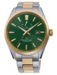 ORIENT STAR RE-AU0405E00BZegarek Orient Star Contemporary RE-AU0405E00B Elegancki, klasyczny, męski zegarek, idealny towarzysz podczas spotkań biznesowych lub ważnego wydarzenia. Koperta czasomierza w rozmiarze 42 mm została wykonana ze stali szlachetnej. Bezel koperty został pokryty powłoką PVD w kolorze żółtego złota. Zielona tarcza daje poczucie głębi oraz idealnie kontrastuje ze złoconymi na żółto indeksami i wskazówkami, które pokryte warstwą luminescencyjną pozwolą na odczyt godziny nawet po zmroku. Dopełnieniem wyróżniającej się estetyki zegarka jest widok sub-tarczy rezerwy chodu oraz datownik na godzinie trzeciej. Kopertę zegarka zamocowano na solidnej, srebrno złotej bransolecie. Ten japoński zegarek posiada manufakturowy, automatyczny mechanizm kaliber F6N43 z 50-godzinną rezerwą chodu, który znany ze swojej wysokiej precyzji. Wskaźnik rezerwy chodu umieszczony na 12-tej godzinie informuje o potrzebie ewentualnego nakręcenia zegarka ręcznie za pomocą koronki. Orient Star RE-AU0401S00B ma szkło szafirowe z powłoką antyrefleksyjną, które jest bardzo twarde i niezwykle odporne na zarysowania, co ma ogromne znaczenie przy codziennym użytkowaniu. Zegarek posiada wysoką wodoszczelność 50M, co pozwala swobodnie umyć ręce. Detal, który ma znaczenieCharakter Basic Date to ostre, solidne, a jednocześnie eleganckie wzornictwo będące synonimem ORIENT STAR. Główne zalety zegarka ORIENT STAR RE-AU0401S00B