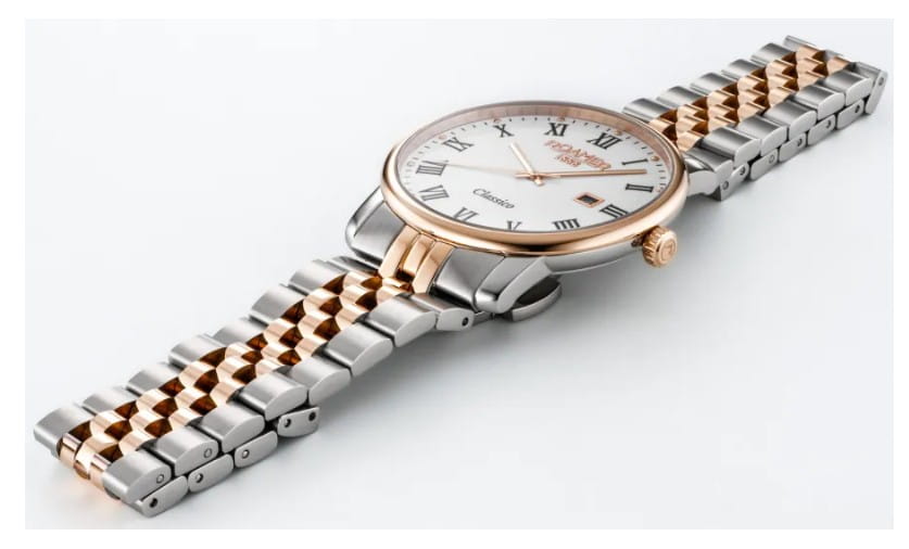 Męski model z linii Classico o średnicy 40 mm. Biała, czytelna tarcza, szafirowe szkło odporne na zarysowania i elegancka bransoleta ze stali szlachetnej podkreślają ponadczasowy charakter. Zegarek napędzany jest precyzyjnym, szwajcarskim mechanizmem kwarcowym.
