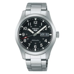 - Logo: klasyczne logo Seiko w górnej części tarczy, zachowujące minimalistyczną i funkcjonalną estetykę serii 5 Sports.