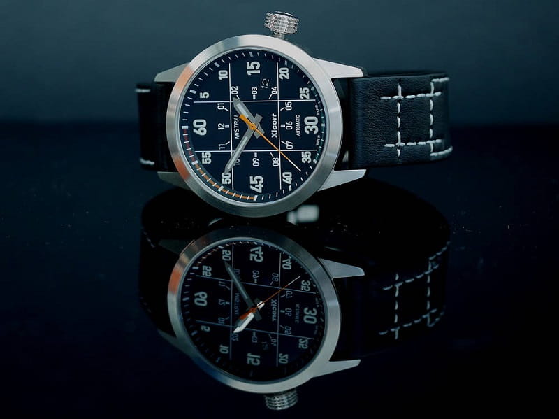 Zegarek Xicorr Mistral czarny z pomarańczowym sekundnikiem X0602