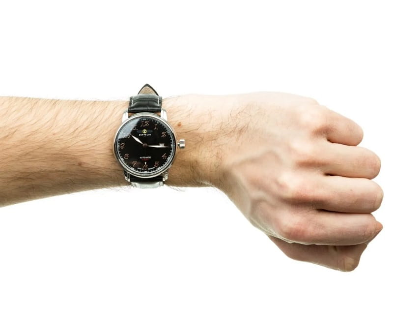 Zeppelin LZ 127 Graf Zeppelin 7656-2 to klasyczny zegarek inspirowany legendarnymi sterowcami Zeppelin. Model ten łączy eleganckie wzornictwo z niezawodnym mechanizmem automatycznym, czyniąc go idealnym wyborem dla miłośników stylu retro i precyzyjnego rzemiosła.Zegarek posiada **stalową kopertę o średnicy 40 mm i grubości 12 mm**, co sprawia, że jest wygodny w noszeniu i świetnie dopasowuje się do nadgarstka. **Czarna tarcza z cyframi arabskimi** oraz delikatnymi wskazówkami nadaje modelowi elegancki wygląd i doskonałą czytelność. Całość chroni **szkło mineralne**, odporne na codzienne użytkowanie.