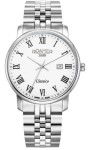 Męski model z linii Classico o średnicy 40 mm. Biała, czytelna tarcza, szafirowe szkło odporne na zarysowania i elegancka bransoleta ze stali szlachetnej podkreślają ponadczasowy charakter. Zegarek napędzany jest precyzyjnym, szwajcarskim mechanizmem kwarcowym.